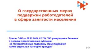 Уважаемые работодатели, в рамках Единого информационного дня, информируем вас о государственных мерах поддержки работодателей в сфере занятости населения.