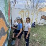 Ученики 4 «б» класса Поспелихинской школы №2 вместе со своим классным руководителем Еленой Ивановной Унгефуг снова взялись за кисти и краски, чтобы обновить патриотические рисунки и надписи на бетонных плитах на въезде в райцентр (со стороны виадука). Эти изображения ребята нанесли сами ещё два года назад, а в прошлом году и в этом — накануне Дня Победы — они их освежили. За зиму краски выцветают, становятся блёклыми, а после обновления надписи и рисунки снова видны издалека — чтобы каждый проезжающий помнил о подвиге героев, завоевавших Великую Победу.