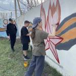 Перед Днём Победы школьники освежили патриотические рисунки на плитах на въезде в Поспелиху